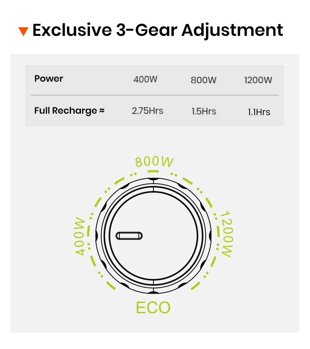 Швидка зарядка від мережі до 1200 Вт повний заряд приблизно за 1 годину
