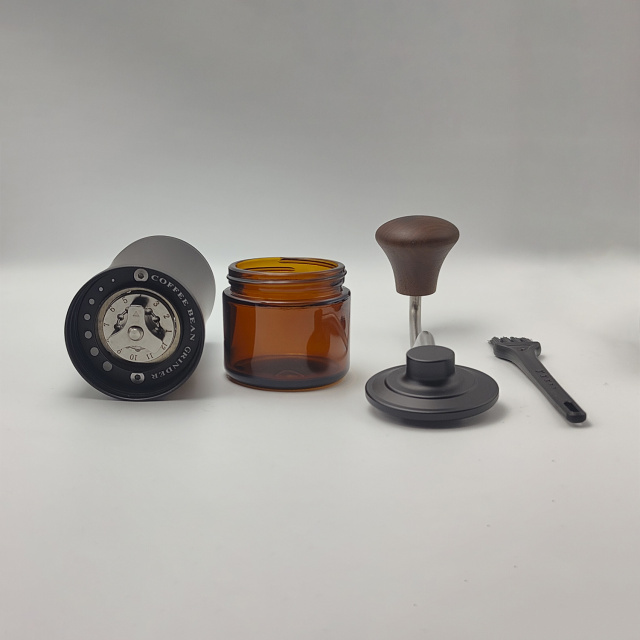 Кофемолка имеет интуитивно понятную точечную систему регулировки помола, что позволяет легко настроить размер фракции — от до более грубого. Эргономичная ручка с деревянным наконечником делают процесс измельчения зерен легким и комфортным.